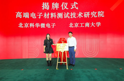 活动现场,“北京科华微电子—北京工商大学高端电子材料测试技术研究院”成立。校友代表与北京工商大学校长郭建华共同揭牌。