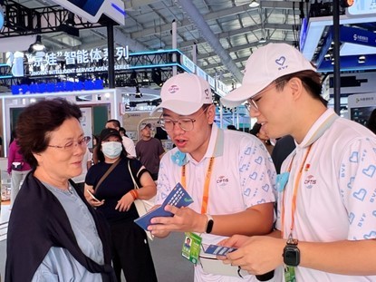 9月12日一位70岁并且视力有障碍的老奶奶想要去参观服贸会,但是由于不会操作和身体原因,来自北京工业职业技术学院志愿者刘嘉烨,蒲京,刘婧怡三名志愿者进行帮忙,刘嘉烨同学帮她引导到闸机,由蒲京和刘婧怡同学进行现场账号的注册,在服务的时候,老奶奶说了一句令我们印象最深的话,无论如何我都要进去参观看看这个繁华的景象。
