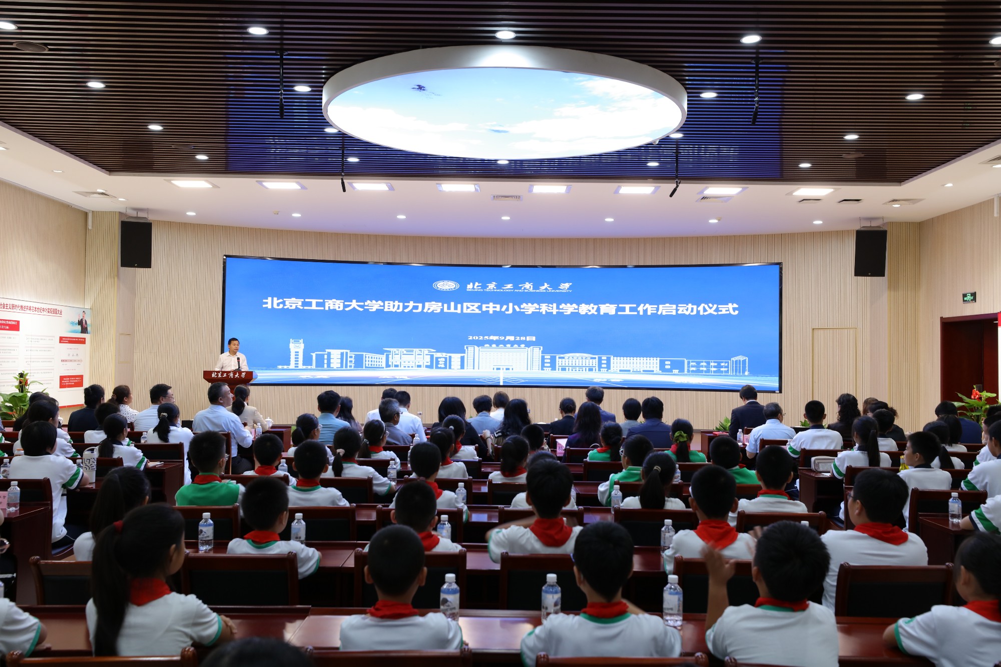 9月28日下午,北京工商大学助力房山区中小学科学教育工作启动仪式在良乡主校区举行。本次活动由北京工商大学、房山区委教育工委、房山区教委联合主办,北京市委教育工委、北京市教委指导,是我校主动对接基础教育需求、以优质资源赋能区域科学教育高质量发展的创新实践,为构建“校地联动、资源共享、协同育人”的中小学科学教育新生态按下“启动键”。