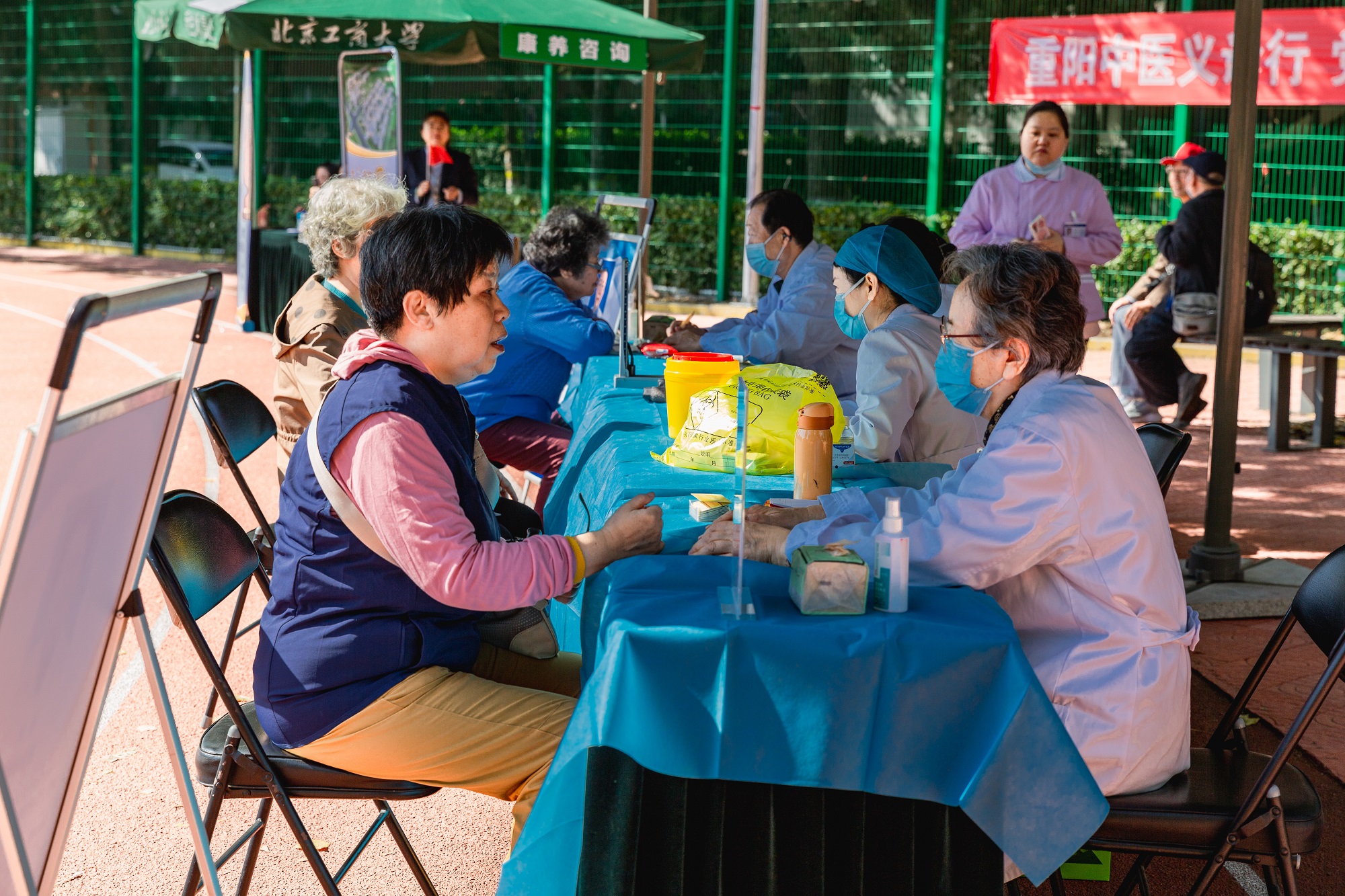 10月11日重阳节,学校离退休工作处举办的“欢度重阳节.情暖夕阳红”离退休教职工健步游艺活动在阜成路东区运动场火热开展。通过健步游艺、健康义诊、康养咨询、安全宣传等系列活动,庆祝新中国成立75周年,弘扬中华民族尊老爱老的传统美德和爱国情怀,丰富老同志的精神文化生活,同时倡导健康生活方式,增强身体素质和安全意识。