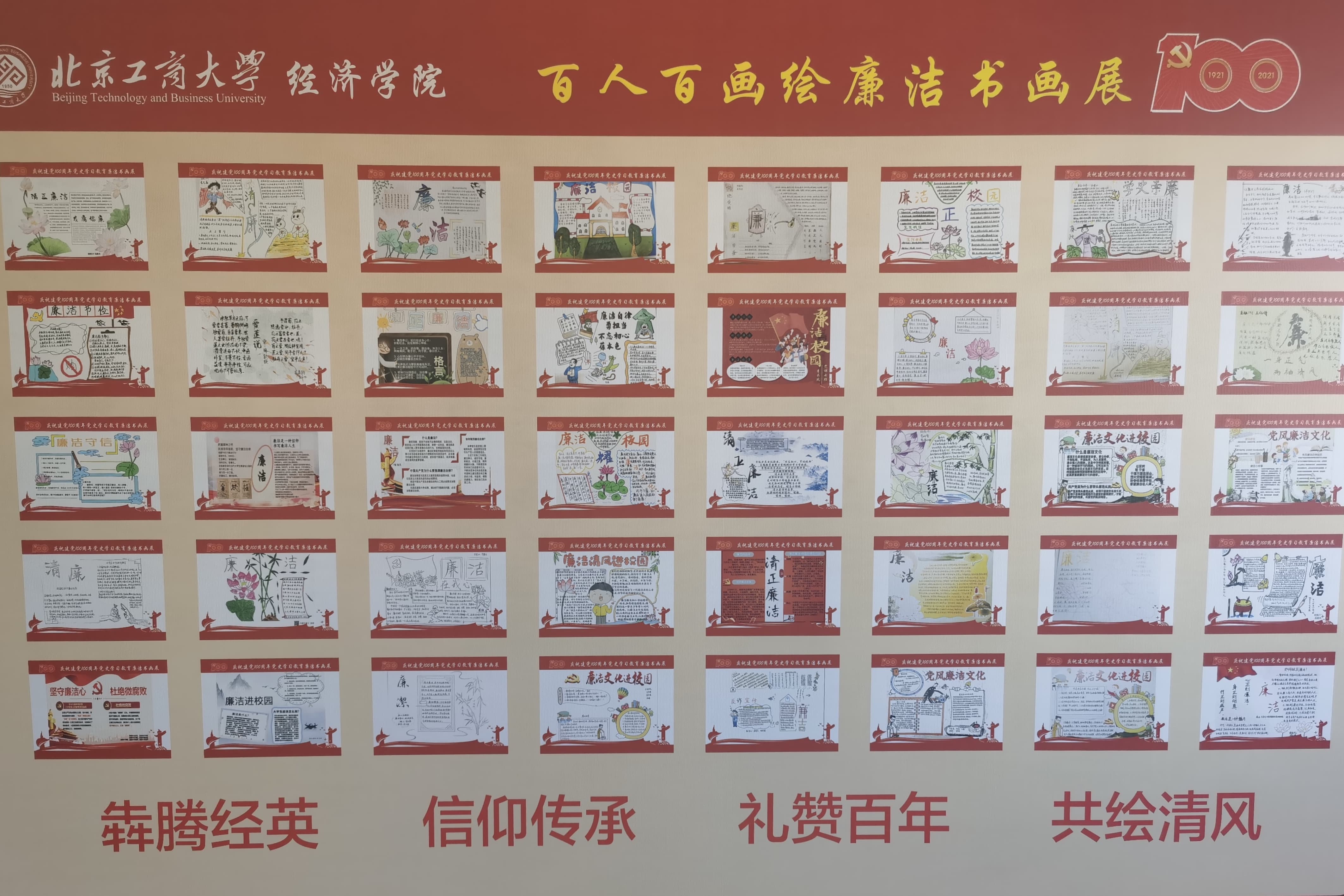 学院发挥学生主体作用,使廉洁成为校园文化的新常态。学院举办了“我为群众办实事——党员进宿舍”活动,成立学生“廉洁教育宣讲团”,党员们在宿舍内开展党风廉政宣传教育,充分发挥学生党员的先锋模范作用,使得“朋辈教育”真正发挥作用,落地见效。学院开展“坚守廉洁底线,弘扬清风正气”主题团会、主题观影分享、主题故事交流,百人百画绘廉洁书画展等活动,在阜成路和良乡两校区设立廉洁书面展,进而推进校园形成“以廉为荣,以贪为耻”的文化氛围,帮助学生正心修身,牢固树立敬廉崇洁的思想作风和行为习惯。