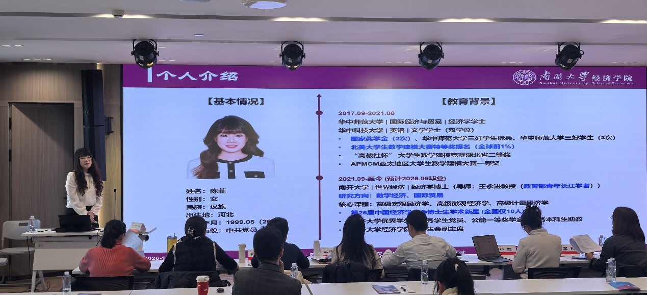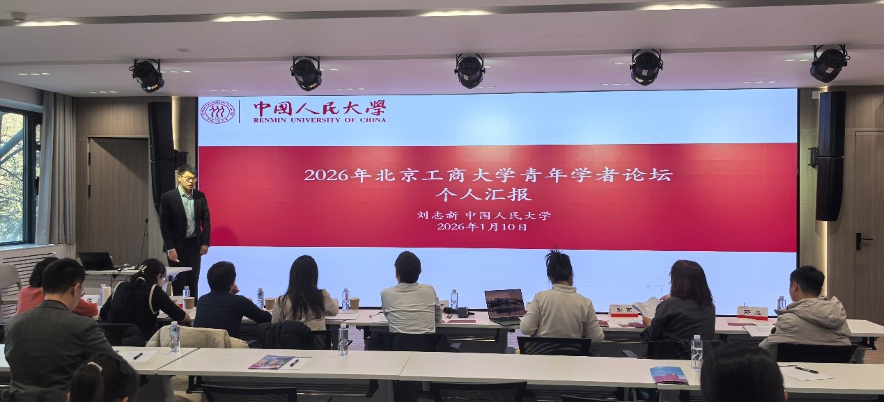 1月10日,北京工商大学经济学院2026年国际青年学者论坛在阜成路校区举办。来自北京大学、清华大学、中国人民大学、中国社会科学院大学、南开大学、山东大学、对外经贸大学、北京邮电大学和中国人民银行金融研究所的18位优秀青年学者参加本次论坛。经济学院执行院长詹新宇教授、副院长牛晓燕教授,贸易经济系主任梁鹏教授、李丽教授,国际经济与贸易系主任郭志超副教授,金融系主任郭娜副教授,风险管理与保险学系副主任赵艳副教授,财政系主任邓磊副教授参加论坛研讨活动。