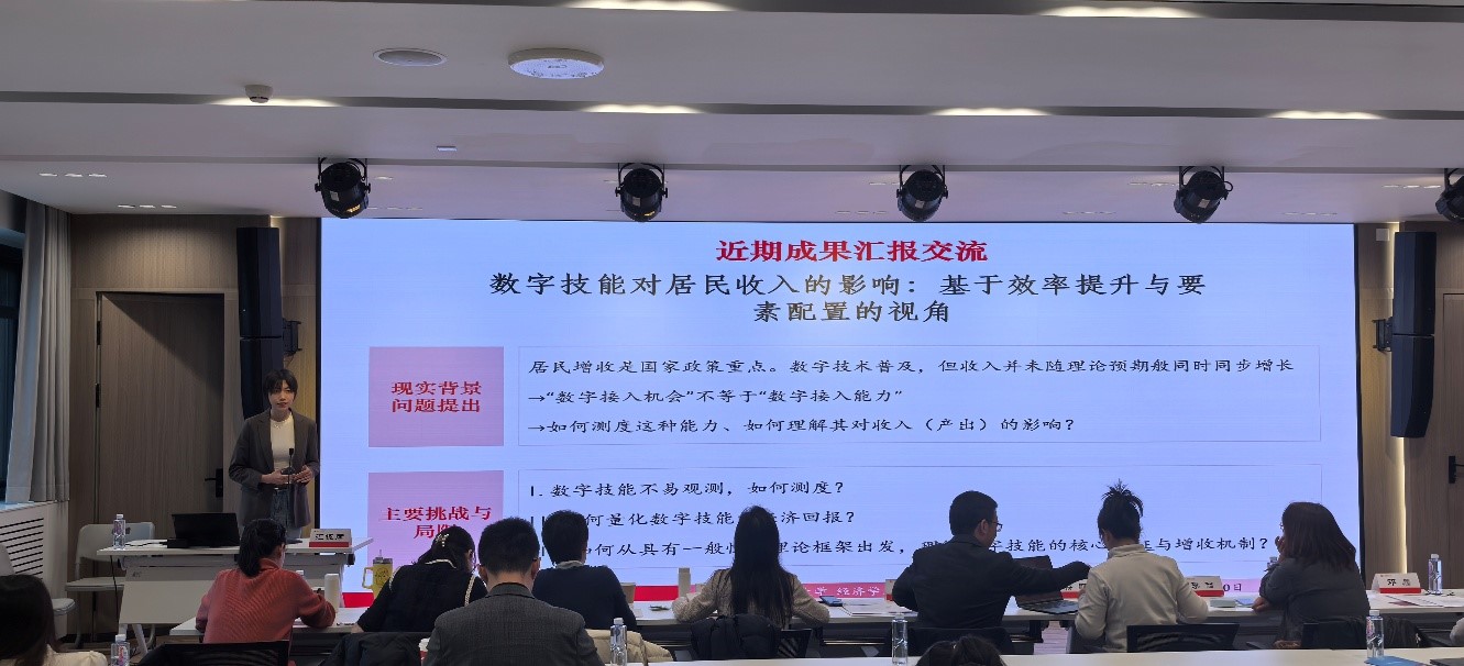 中国人民大学应用经济学院博士、北京大学经济学院博士后蔡宇涵报告了论文“数字技能对居民收入的影响——基于效率提升与要素配置的视角”。文章利用中国家庭数字经济数据库,测度了我国居民数字技能水平,并构建数字经济中个体效用最大化理论模型,讨论了数字技能对收入的影响及机制。研究证实,数字技能提高显著促进了个人收入增长,机制包括引致时间投入增加及促进信息等新生产要素获得。相关发现为制定有效率的居民增收政策提供重要启示。