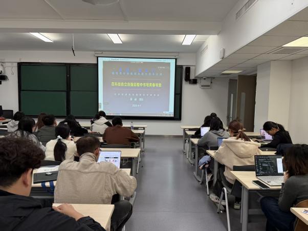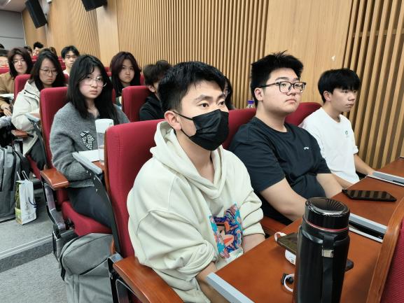 现场座无虚席,学生们科创热情高涨,在不同会场认真聆听。杨保老师紧扣学习贯彻2026年全国两会精神,特别是“推动科技创新和产业创新深度融合”的部署要求,深入解读国家创新战略,传达习近平总书记考察北京亦庄国家信创园时关于“建设社会主义现代化强国,关键在科技自立自强”的重要指示精神,引导学员深刻认识时代使命。结合多年指导经验,杨保老师剖析了“挑战杯”、国创赛等创新创业赛事的育人内涵与备赛要点,分享了如何将专业所学与国家战略需求、首都产业发展痛点相结合,推动实验室成果转化为服务社会的实际项目,激发学员将个人发展融入国家科技自立自强的宏伟事业。