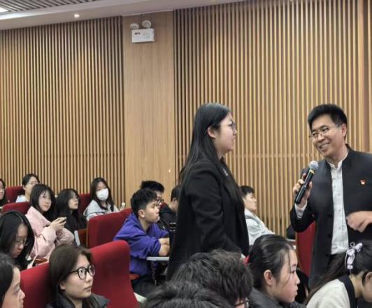 现场气氛热烈,经济学院团学骨干陈美绮动情地表示:“牛老师的授课让我深刻认识到,党史从来不是课本上静止的文字,而是指引我们前行的精神航标。作为新时代的团学干部,我们绝不能做置身事外的‘旁观者’,而要当起而行之的‘奋斗者’,在学史力行中践行‘点亮一盏灯,照亮一大片’的先锋承诺!”