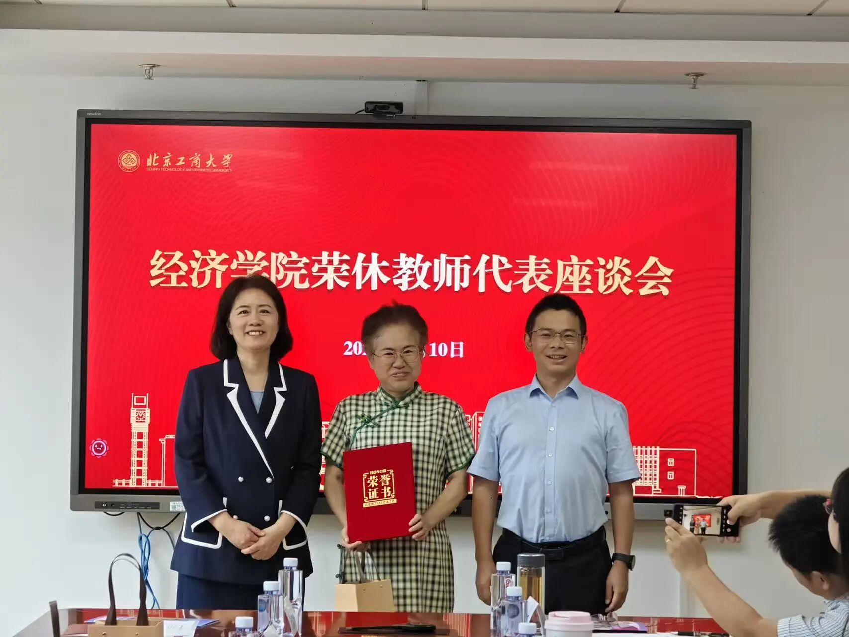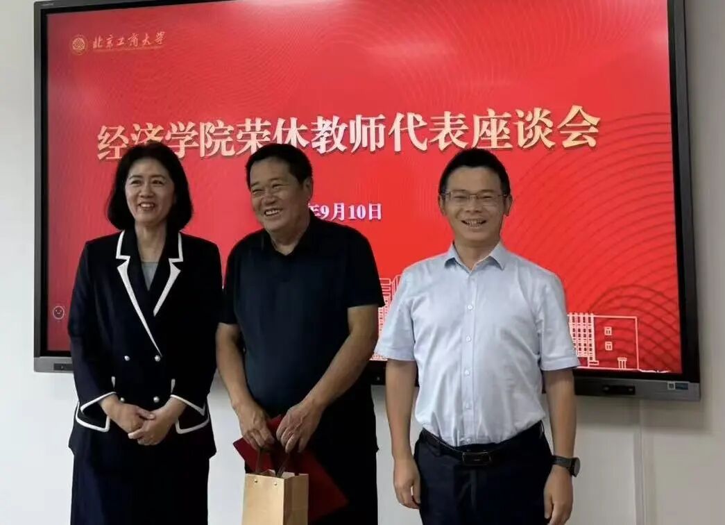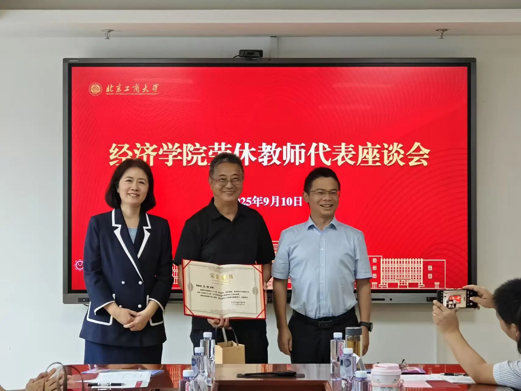 感恩奉献,致敬芳华。在第 41 个教师节来临之际,9月10日下午,经济学院在良乡校区学院会议室召开2025年荣休教师座谈会,向为学院发展倾注毕生心血的荣休教师致以节日的问候与崇高的敬意。2025年荣休教师代表杨德勇、栗书茵、马乃云、吴强、潘宏,学院党委书记张春萍,执行院长詹新宇,副书记李艳春,副院长牛晓燕、许敬轩、马雪娇,中青年教师代表郭娜、张正平、邓磊、徐芬及新入职教师参加座谈会。会议由马雪娇主持。