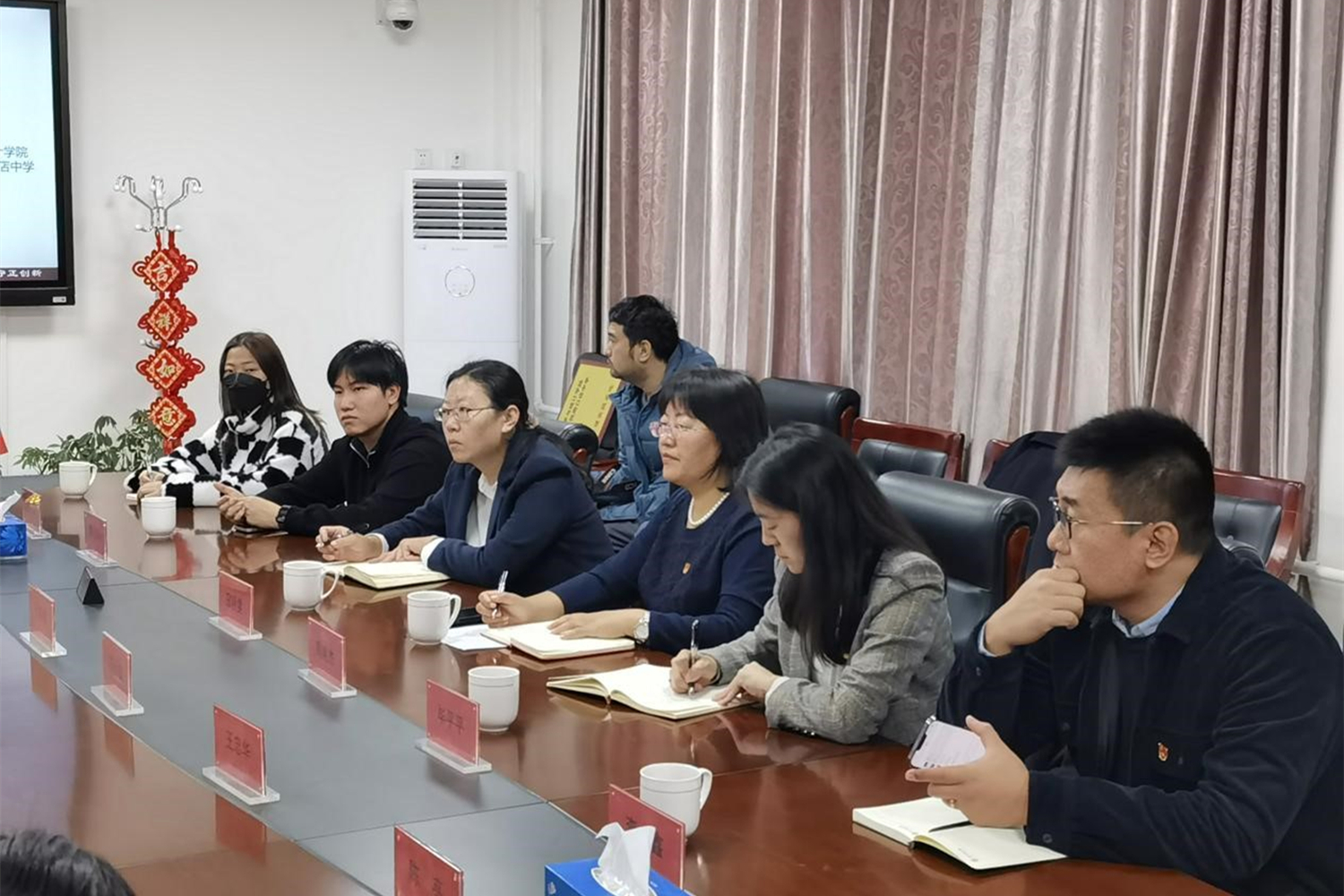 周艳杰简要介绍了学校和学院发展历程,重点阐述了学院的学科建设、教师队伍、党建工作情况,她强调,中学与高校共建是协同育人的重要举措,并表达了将共建活动推向深入的愿望。