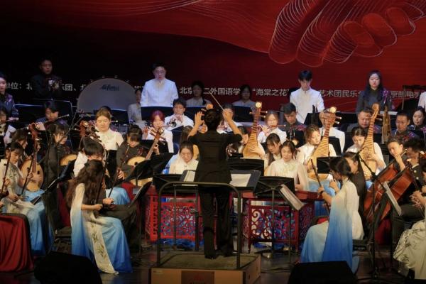 近日,由北京市委宣传部、市委教育工委指导,北京民族乐团主办的“大团小团手拉手”北京民族乐团与首都高校艺术社团结对汇报演出在民族文化宫大剧院精彩落幕。此次演出既是2025年“‘京’彩文化·青春绽放”行动计划的重要组成部分,也是首都文化资源推动青年学生参与全国文化中心建设的重要实践,我校民乐团作为首都高校代表受邀参演。在指导教师刘兆的带领下,我校民乐团以精湛技艺演绎《我的祖国》《龙腾虎跃》等经典作品,并在观众热烈掌声中返场加演《花好月圆》,赢得现场观众热烈掌声。