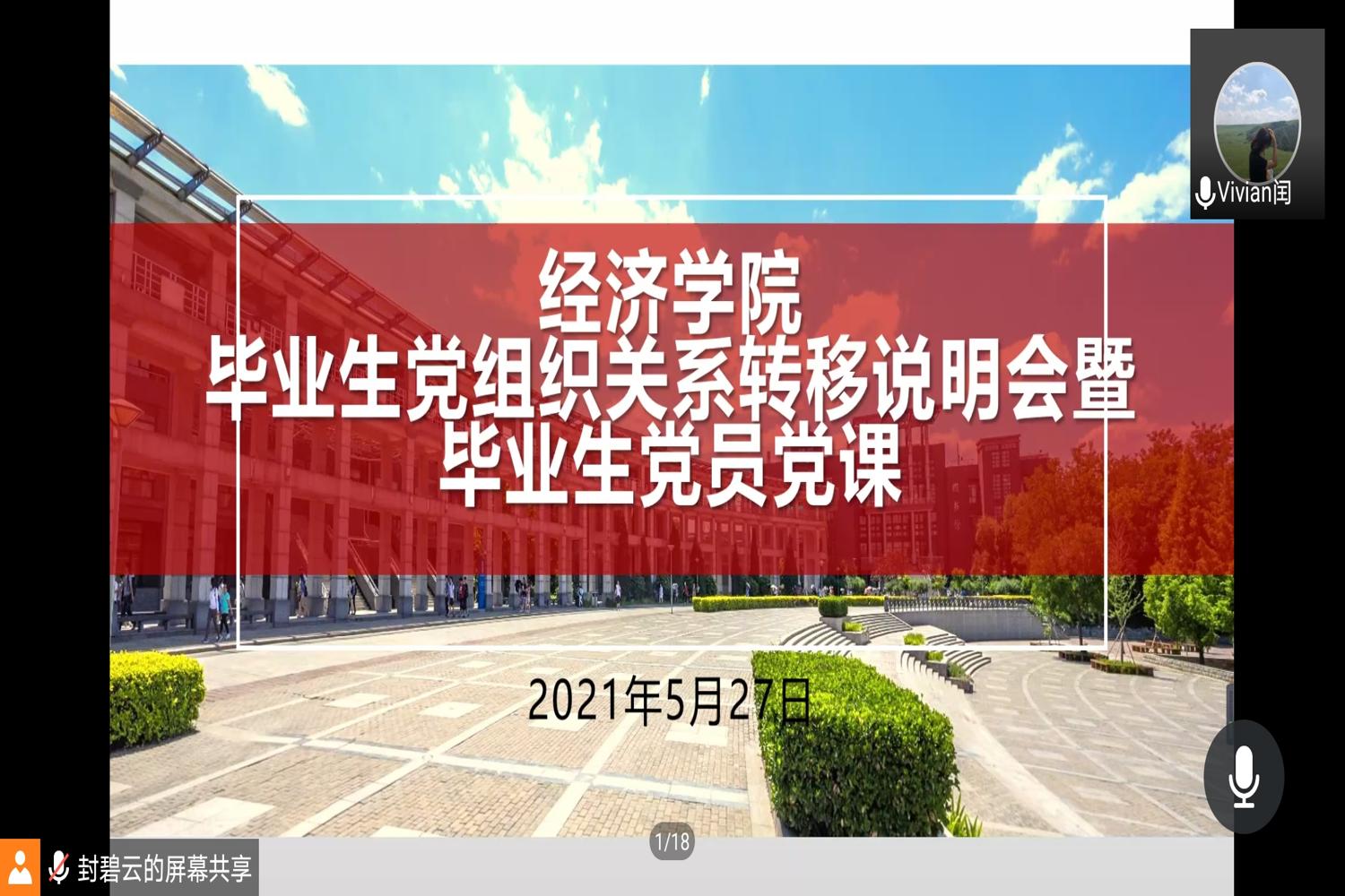 5月27日,为了加强毕业生党员离校前教育,做好毕业生党员党组织关系转移工作,经济学院开展了线上毕业生党员离校前党课暨毕业生党组织关系转移说明会。经济学院党委副书记李艳春和全体毕业生党员参加本次活动。