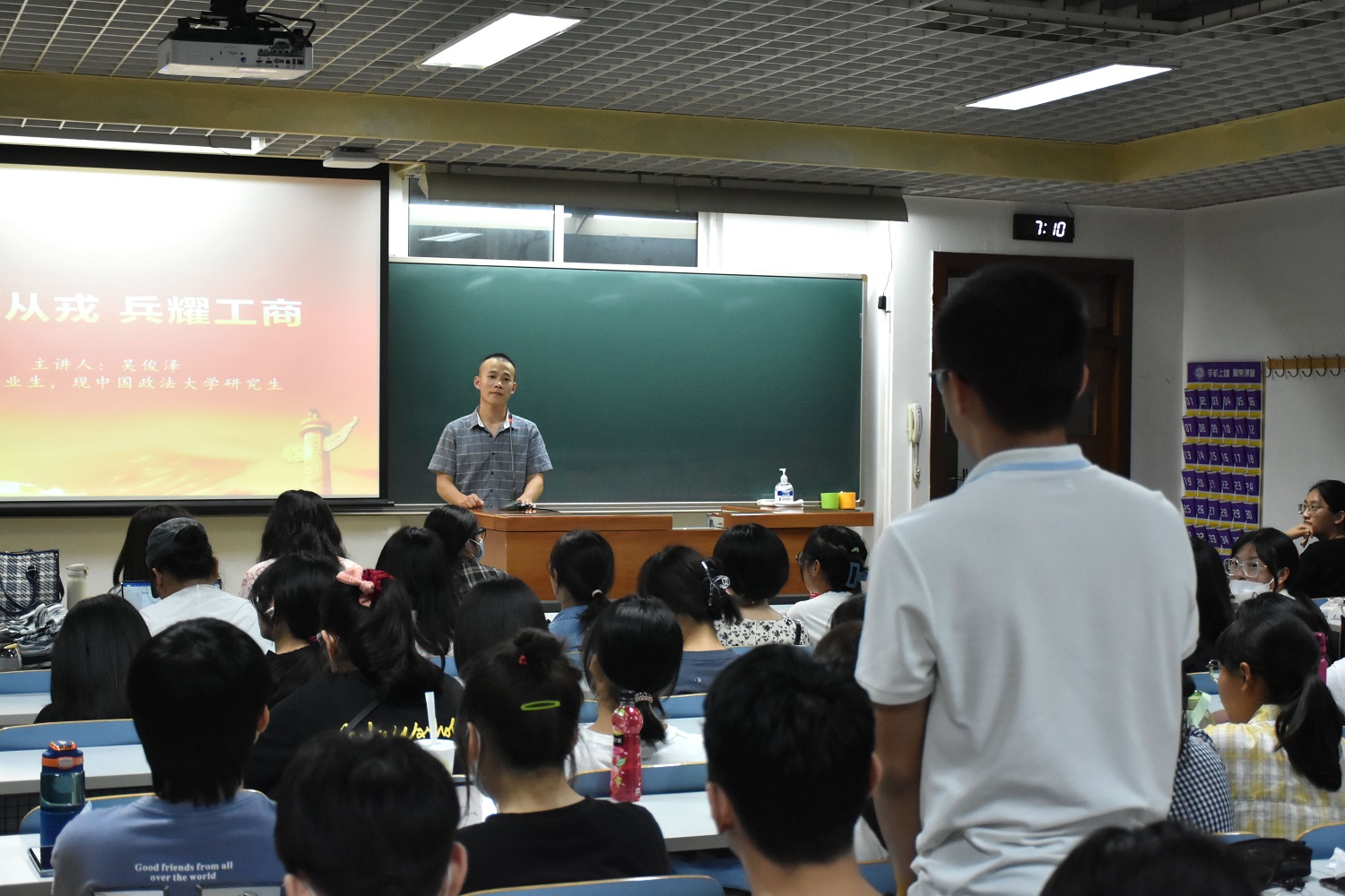 为促进新老生之间的交流,法学院召开了“青春榜样”主题报告会,邀请了吴俊泽、陈阳、许文静、邹颖凡和吴汇泽五位优秀学生代表向大一新生分享了他们各自对大学生活的感悟以及生活经验。吴俊泽作为退伍学生代表,为同学们讲述了军旅生活的艰辛和收获,分享了他如何在退伍后一年时间内完成了四六级、司法考试和研究生考试的学习经验;法学19届学生会主席陈阳分享了她参与学生工作的经历与感悟,鼓励新生积极投入到校园实践活动中,将自己淬炼成钢,心无旁骛,增长才干;学生第二党支部书记许文静以综测表为骨架,为大家详细讲述了如何提升专业绩点、如何通过学科竞赛提升科研能力;荣获多项奖学金的邹颖凡同学向新生介绍了学习方法,同时她向大家推荐了几个提高学习效率的妙招;校级才艺之星吴汇泽以合唱团经历为引,为同学们讲述了如何在学习与工作中进行选择,她建议同学们将兴趣与专业相结合,尽早做好大学规划。