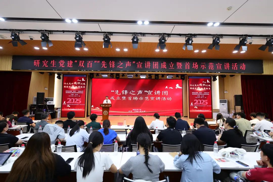据悉,全国研究生党建“双百”工作自2018年启动以来,持续开展三批,遴选全国高校297个研究生党支部和300名研究生党员参与创建培育,促进了国家、省市、高校三级研究生党建标杆体系建设,成为加强研究生党建工作质量的重要抓手。“先锋之声”宣讲团依托研究生党建“双百”朋辈育人资源成立,致力于通过宣讲传递青年声音、宣扬时代旋律、激发思想共鸣、汇聚精神力量,形成朋辈示范引领的强大动能,引导广大研究生厚植家国情怀,勇担强国复兴大任。