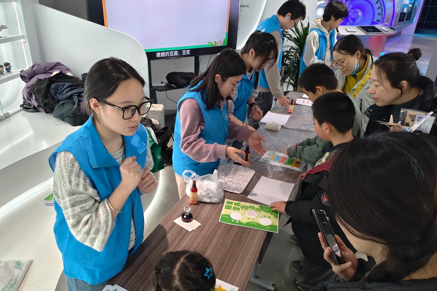 2月10日至11日,实践团联合北京科学中心开展儿童食育科普活动,吸引了包括“新京报”小记者团在内的700余人参与。活动采用“科普宣讲+集章闯关”的创新模式,循环播放团队精心制作的视频,引导儿童深入了解膳食宝塔的各层食物分类与作用。三大闯关区“食物归位大挑战”“VC 与碘伏变色实验”“问卷科普调查”帮助儿童巩固所学知识,集章兑换奖品的形式极大地调动了孩子们的参与热情。此次活动充分验证了沉浸式科普对儿童的强大吸引力,为儿童提供了一个在趣玩中学习、在探索中成长的优质平台。