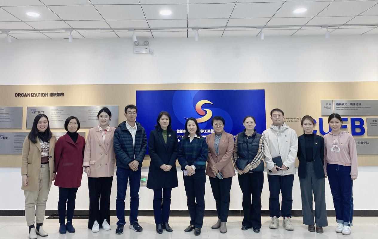 为进一步增进学院与兄弟院校之间的交流合作,提升党建思政工作水平, 4月4日下午,商学院党委书记张春萍带队赴首都经济贸易大学工商管理学院调研交流。首都经济贸易大学工商管理学院党委书记马力接待了张春萍一行。学院党委副书记张倩、市场营销系党支部书记严欢、工商管理系党支部书记孙笑然、组织员祁飞、辅导员郭馨远与首都经济贸易大学工商管理学院党委副书记陈蒲晶、副院长孙忠娟、市场营销系党支部书记王夏、企业管理系学习委员兼纪检委员孙为政、学院组织员兼专职辅导员张莹等参加了本次调研交流。