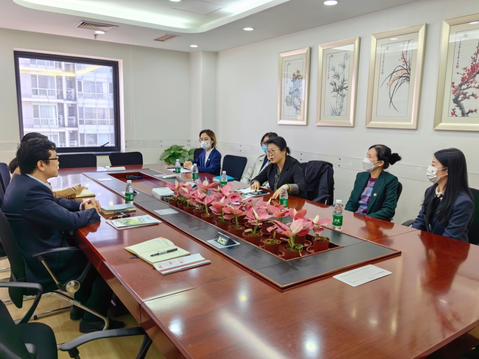 张倩介绍了学校的发展历史、办学规模、人才培养、发展建设情况,介绍了商学院师资队伍、学科科研和专业建设、毕业生来源及就业等情况;她谈到我院与银联商务有比较长时间的合作交流基础,专业建设、人才培养、发展战略等方面有较高的匹配度,希望通过此次访企拓岗促就业专项行动进一步加强双方的联络对接,切实通过双方组织的共同努力,推动双方在人才培养和匹配的契合,推动我院毕业生更好更高质量就业,促进更深层次、更广渠道的合作与交流。