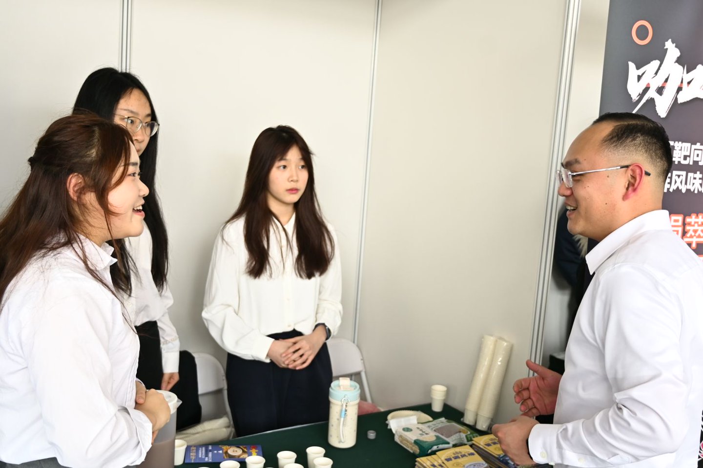 本届科创日活动以食创冬令营成果为依托,共推出25个科创项目,来自全校8个学院的124名本硕博学生参与其中,1个项目来自北京中医药大学中医学院,院外学生占比约20%,首次实现科创活动跨校联动,推动中医药、人工智能与食品健康跨学科融合,体现了“工商一体化”专业交叉融合的鲜明特色。各团队聚焦食品科技创新与产业应用,以实物展示、互动体验、动态演示等形式,全面呈现项目创新点、科学性与产业化前景。评审专家们巡看展台实物,分别围绕技术落地、市场转化、产业适配等维度逐一点评,为项目优化提供专业指导。