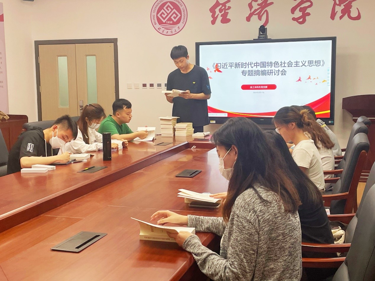 金工本科生党支部将摘编研读结合党的二十大报告原文中《开辟马克思主义中国化时代化新境界》部分,深刻地体会到马克思主义科学理论指导对于中国共产党的创立与发展有着无比重要的作用。在领读人的带领下,支部成员从原文研读中发散学习,从习近平新时代中国特色社会主义思想的“十个明确”“十四个坚持”“十三个方面成就”中汲取力量,让青春在学思践悟中绽放光彩。