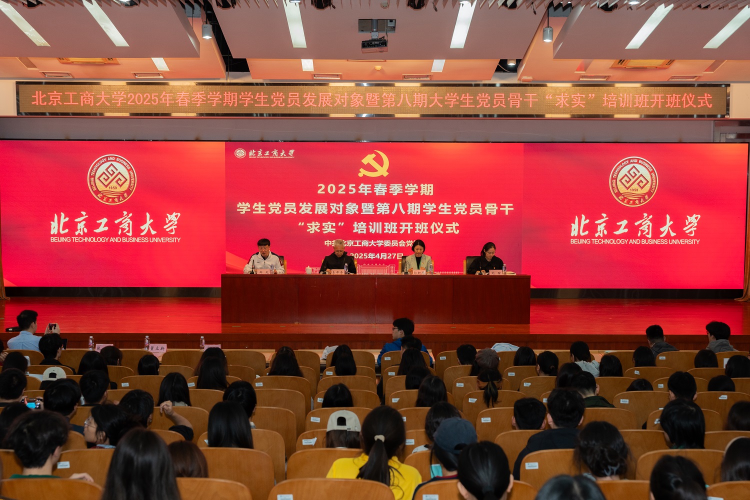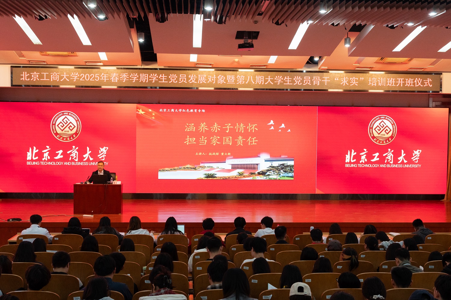 4月27日,2025年春季学期党员发展对象培训班开班仪式暨第八期学生党员骨干“求实”班集中培训在良乡校区举行。学校党委副书记李中奇出席开班仪式并讲话。党委研究生工作部部长郭新愿、党委学生工作部部长郑光、党委组织部副部长刘玢,2025年春季学期全体党员发展对象和“求实”班成员参加此次活动。仪式由郑光主持。