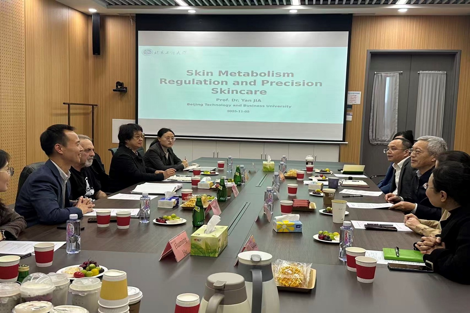 11月5日,中国科学院深圳先进技术研究院医药所能量代谢与生殖发育研究中心首席科学家、深圳理工大学药学院讲席教授约翰・罗杰・斯彼克曼(John Roger Speakman)院士受邀赴北京工商大学食品与轻工学部开展学术交流。北京工商大学党委副书记李中奇致辞欢迎。他表示,科技对人类生命健康的支撑作用日益凸显,科学家是科技创新的核心力量。Speakman院士自英国专程到访,既是对学校食品、轻工领域科研工作的充分认可,也为学校发展注入强劲动力。希望以此次交流为契机,与Speakman院士及其团队深化合作,在精准营养、精准护肤等领域获得指导和支持,携手产出更具影响力的科研成果。