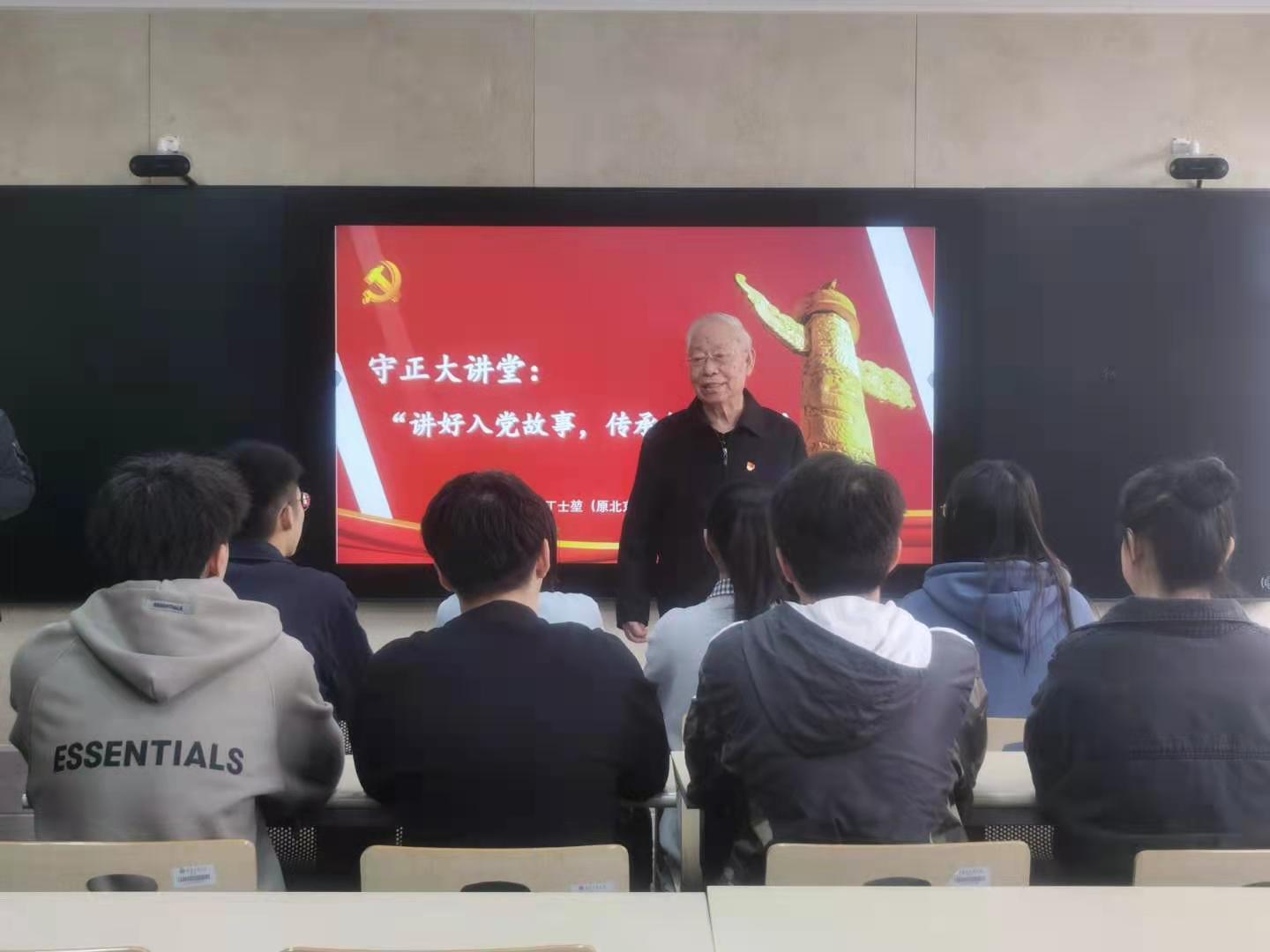 5月,学校关工委与国际经管学院合作,以“讲好入党故事,传承红色基因”为主题,联合开展“读懂中国”主题活动。原北京轻工学院党委副书记丁士堃教授为国际经管学院的学生党员与入党积极分子们上了一堂别开生面的党课,丁士堃教授的入党初心和为党奋斗的历程深深地打动了同学们,他鼓励大家:“一个人只有把他的生命和时代和祖国和人民的命运结合在一起,这样的生命才更加有意义。”在鲜红的党旗下,丁士堃教授带领学生党员们重温入党誓词。