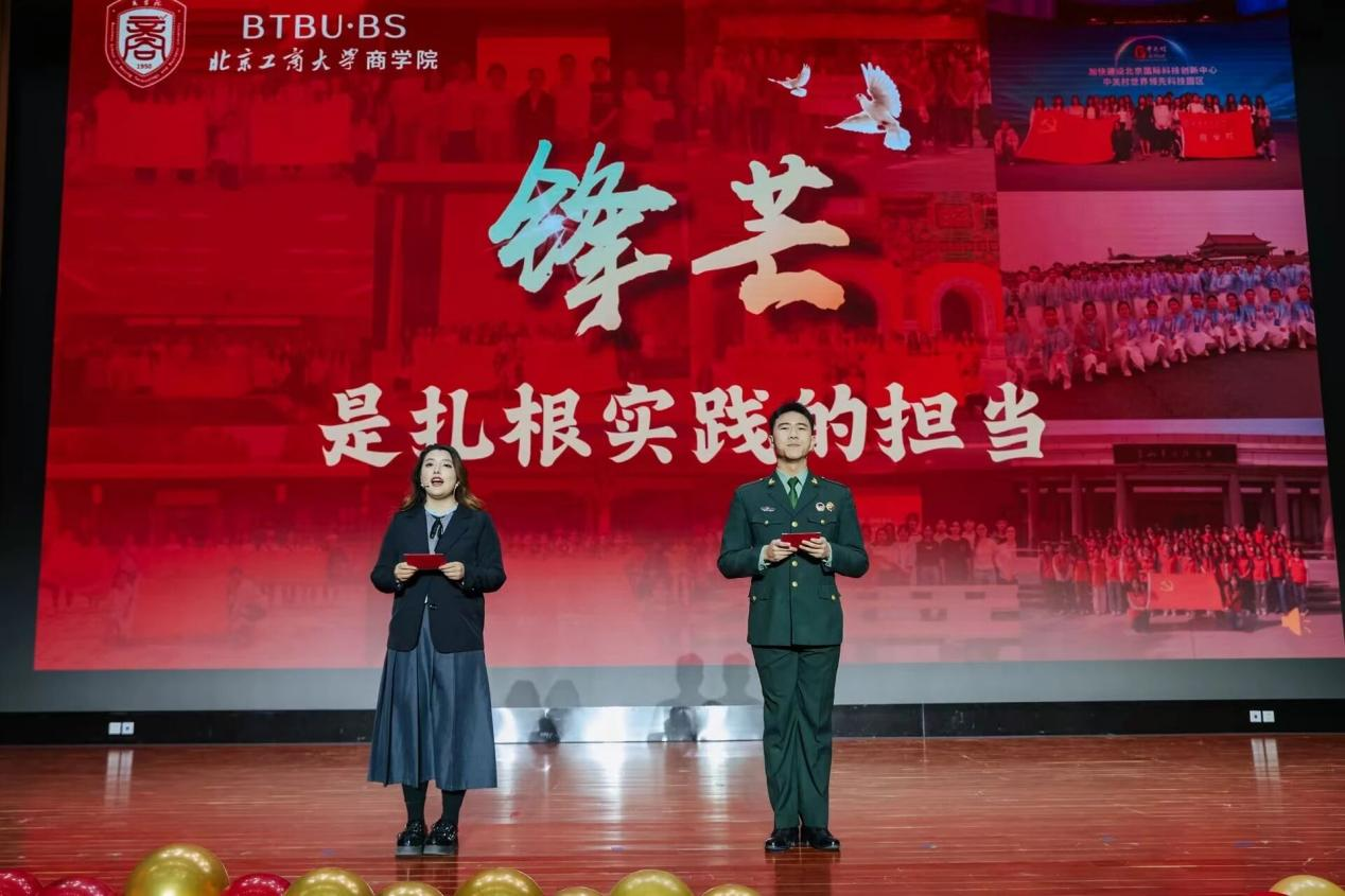 大会在《岁月回响》的讲述中拉开帷幕。主讲人以“一二・九”运动红色历史与商学院育人传统为依托,以跨时空的爱国青年行动作为精神联结,生动再现了“一二・九”运动中的真实历史瞬间,以及当代商院学子服务抗战胜利80周年大会的志愿图景,展现出商院青年传承爱国主义精神、与祖国同奋进的青春风采。这份跨越九十年的青年担当与爱国赤诚,引发全场强烈情感共鸣,掌声经久不息。