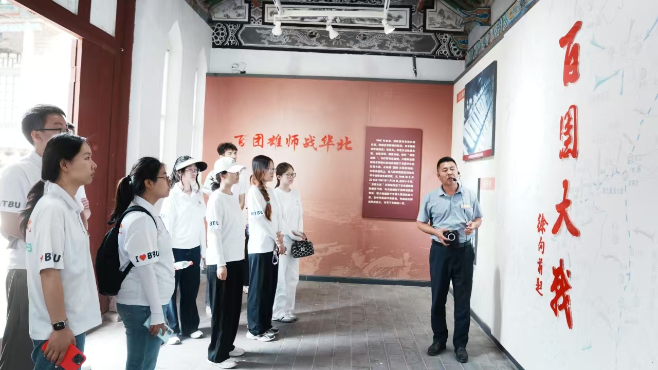 习近平总书记指出,“结合新的实际与时俱进地大力弘扬太行精神,坚定正确的理想信念,始终保持对党对人民对事业的忠诚”。实践团一行走进八路军太行纪念馆,通过6400多件珍贵抗战文物,与革命先辈展开一场“跨越时空的对话”。“太行山上”沉浸式党课还原出一幅幅强烈震撼的太行军民浴血奋战抗战史诗画卷。在百团大战砖壁指挥部旧址,实践团师生回顾了朱德总司令、彭德怀副总司令和左权副总参谋长等八路军领导人曾在这里的生活、战斗以及伟大的革命实践。