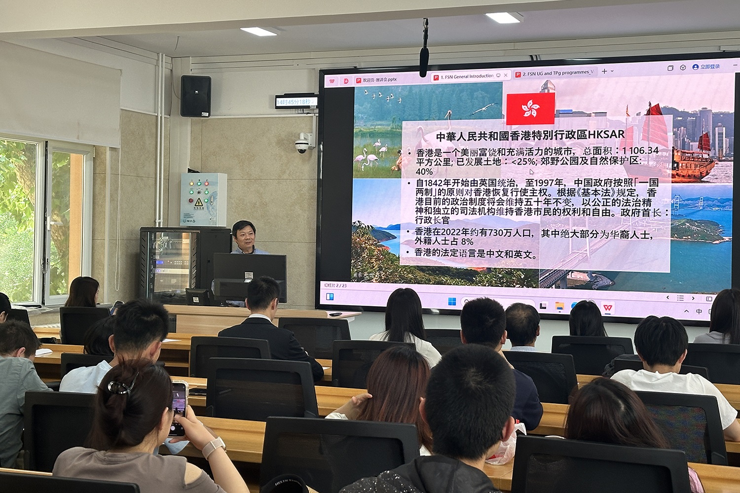 访问团首先在教二楼作专场宣讲,学院近百名师生积极参加,宣讲会由王蓓主持。会上,陈声介绍了香港理工大学食品科学与营养学系的基本情况。方家熙详细解读了该系本科(FST)、授课型硕士(2MSc)、研究型硕博士(Mphil,PhD)和食品管理学博士(DFSM)的课程体系、培养方案、入学标准以及职业发展前景。同学们积极提问,就申报条件、专业选择等话题与访问团成员进行了深入交流。