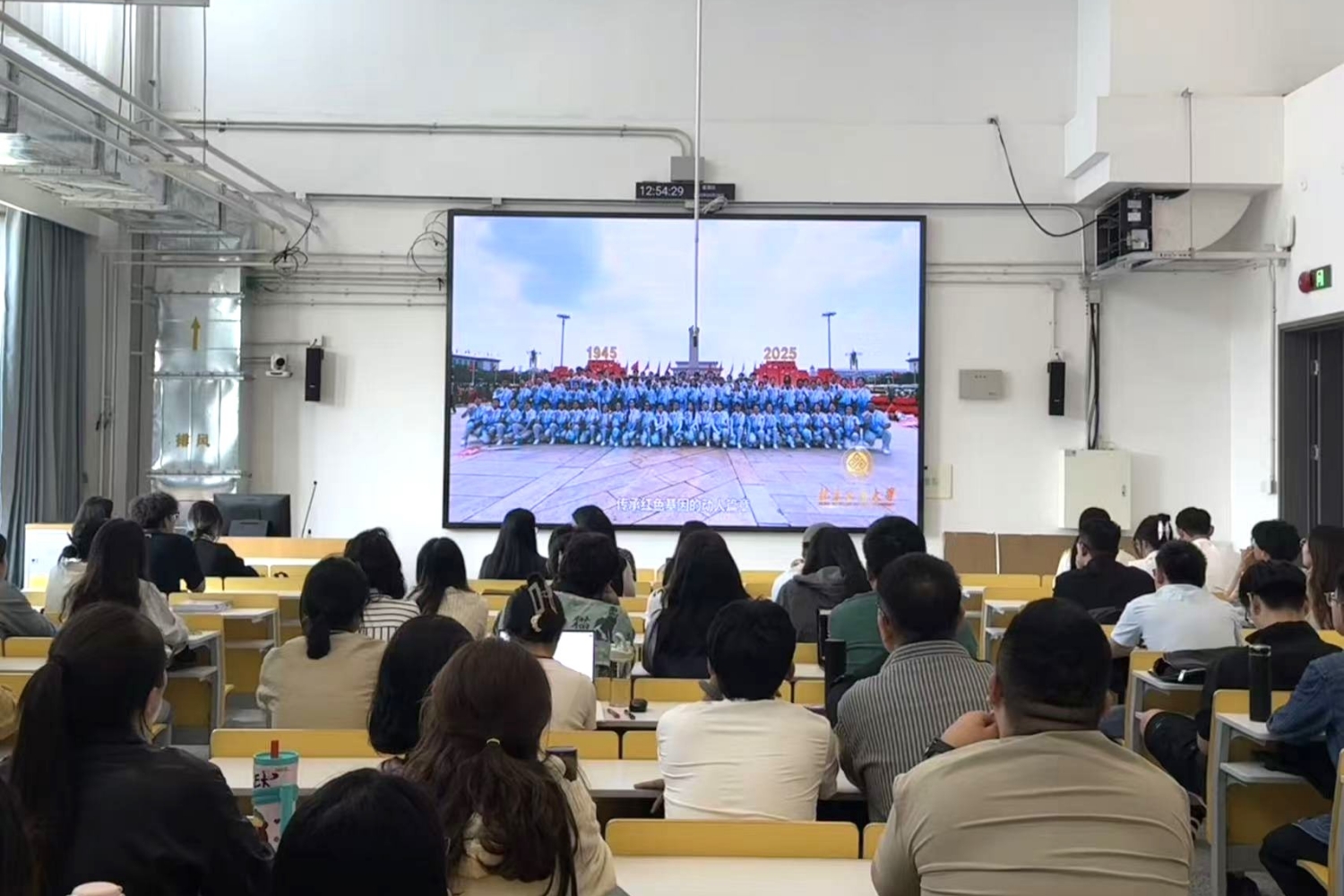 首先,全体师生共同观看了《铭记历史 勇担使命》北京工商大学纪念中国人民抗日战争暨世界反法西斯战争胜利80周年专项活动纪录片。这部专题片,不仅是国家盛典的缩影,更呈现了北工商师生参与其中所展现出的责任担当与青春风采,为全体师生上了一堂生动的爱国主义思政课。