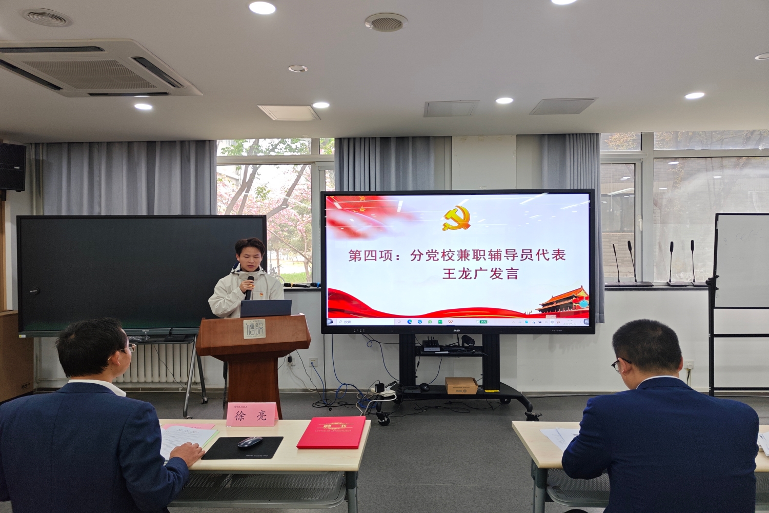 学院党委委员徐亮为分党校兼职辅导员颁发聘书,对他们在培训工作中的辛勤付出表示充分的肯定和衷心的感谢。