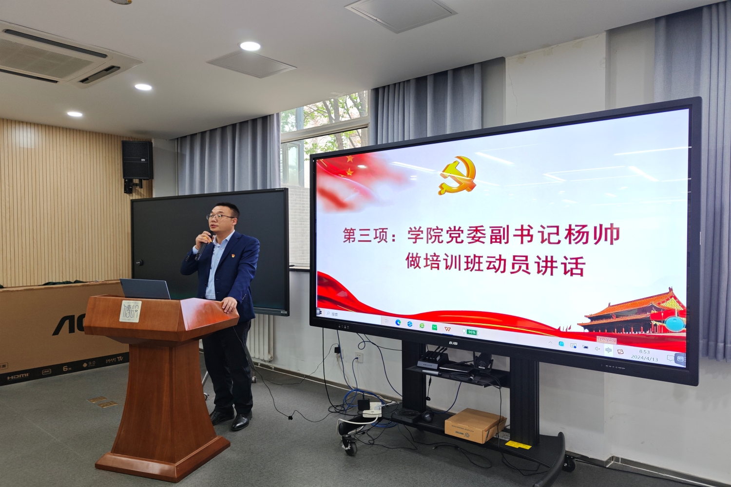 开班仪式在庄严的国歌声中拉开序幕。学院党委副书记、分党校副校长杨帅做开班动员讲话,他表示,在全面建设社会主义现代化国家新征程、向第二个百年奋斗目标进军的关键时刻,举办此次培训班具有特殊的重要意义。他强调,全体学员要深刻认识到学习党的理论知识的重要性,认真学习全国“两会”精神,深刻领会新质生产力理论的丰富内涵和核心要义,充分认识发展新质生产力的重要意义,不断提高政治站位,强化思想认识,坚定理想信念。杨帅向学员们提出了三点要求:一是端正入党动机,珍惜学习机会,深刻理解入党的严肃性和神圣性,充分利用培训班提供的资源,不断提升自己的政治理论水平;二是尊师守纪,严格自律,以党员的标准严格要求自己,自觉遵守培训班的各项规章制度,积极参与集体活动;三是学有所成,早日入党,通过学习深刻理解党的二十大精神,全面系统地掌握党的基本理论知识,将理论与实践相结合,积极参与社会实践活动,用实际言行体现一名入党积极分子的素质。