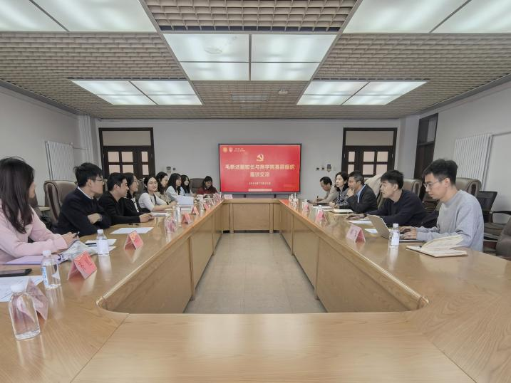 在座谈交流中,智能财会学系教师党支部党员围绕党支部组织建设、理论学习,智能财会的学科发展、人才培养等方面,新商课青创中心党支部学生党员就党支部建设基本情况、工作方法等方面,会计241班学生就专业学习、新生适应、发展规划等方面交流想法体会、问题建议。毛校长深入了解大家的思想、学习、工作、生活等各方面情况,仔细倾听师生发言,与师生们亲切交流、答疑解惑。