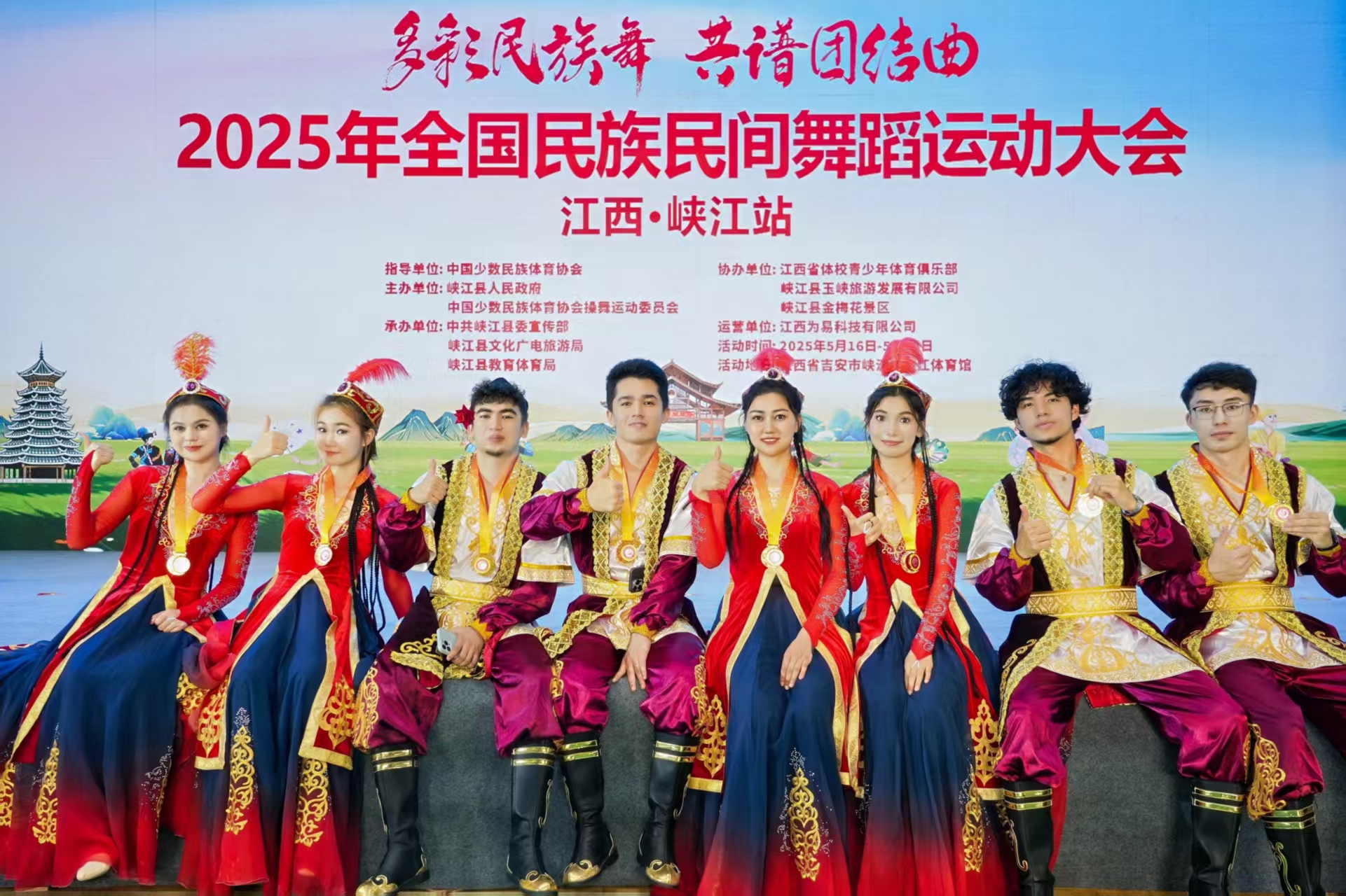 2025年5月17日,由中国少数民族体育协会指导,峡江县人民政府联合中国少数民族体育协会操舞运动委员会共同主办的2025年全国民族民间舞蹈运动大会在江西峡江举办。我校8名学生代表表演的舞蹈作品“石榴花开”从众多优秀参赛作品中脱颖而出,荣获民族民间舞蹈组第一名的好成绩。