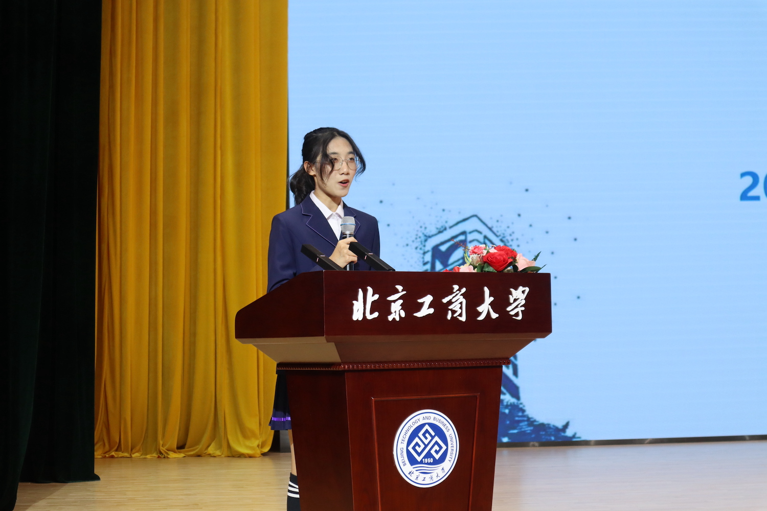 经济182班闫思彤成功保研至北京师范大学,保险17班姚岚以390的高分考研至我校,两位优秀学生代表分别从不同角度分享大学学习经验,为新生的学业规划和未来定位提出建议。2021级安雨晨代表新生感谢学院为同学们提供的学习资源和搭建的专业平台,承诺将在“经英筑梦计划”的引领下尽快适应学习环境,培养良好学习习惯,担负传承和发扬学院优良传统的使命。