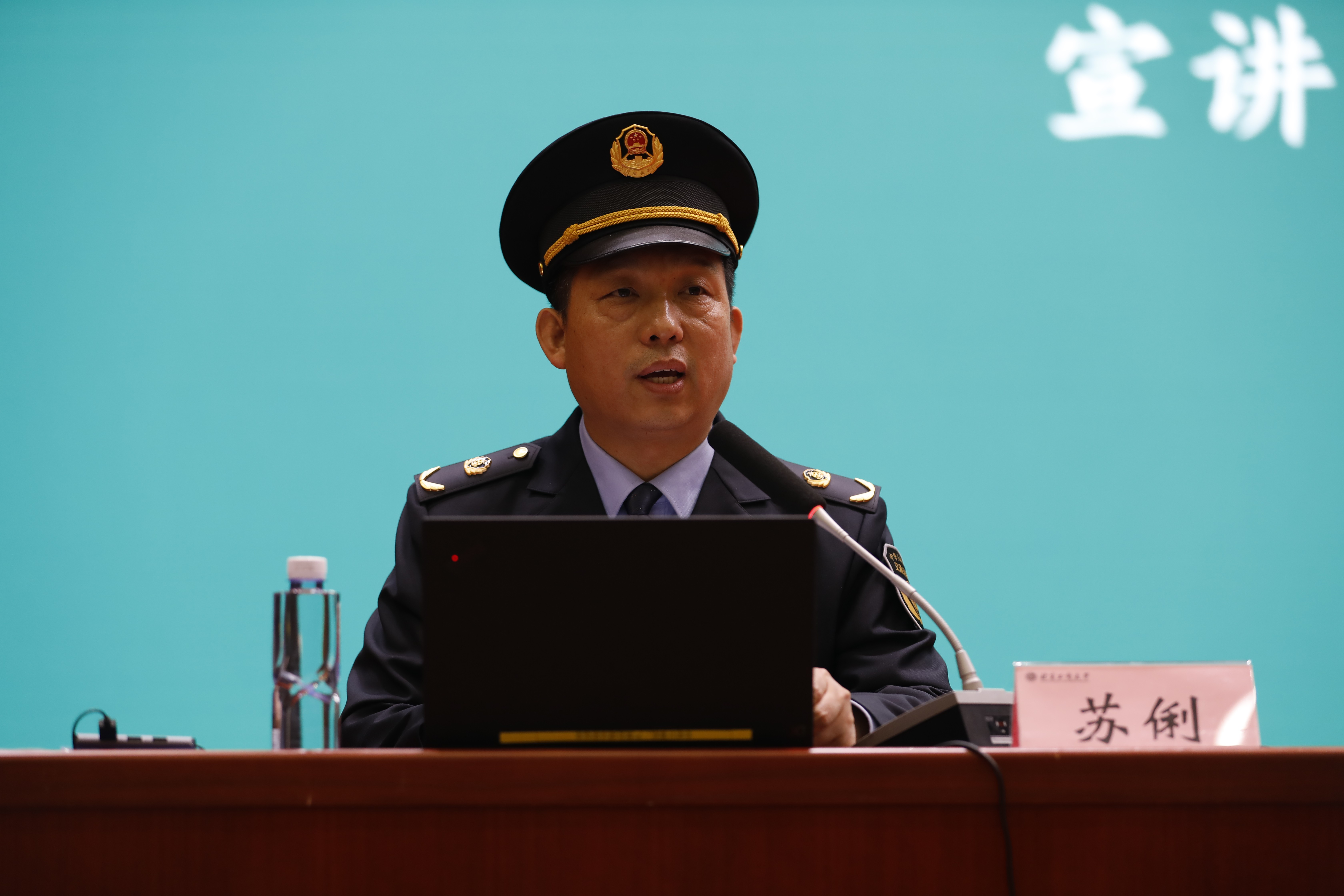 全国五一劳动奖章获得者、“中国好人”“全国最美志愿者”,河北省交通运输综合执法监督局副大队长苏俐讲述了自己从部队退役后秉承军人本色,心怀党恩,成立“学雷锋爱心执法车队”,多次向困难百姓伸出援手,尽显交通人本色。授课结束时,苏俐队长与同学们重温了“爱国三问”。“愿伟大的祖国繁荣富强!”同学们掷地有声的回答响彻会场。