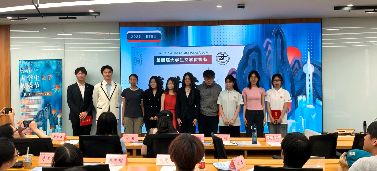 2025年6月18日,北京工商大学第四届“大学生文学传媒节”演讲比赛决赛在良乡校区师生服务中心203教室隆重举行。此次活动由语言与传播学院中文教研室、中国故事叙事研究中心主办,来自全校各个学院的10名选手在历经初赛、复赛选拔后齐聚一堂,以“我与中国式现代化”为主题,声情并茂地讲述了中国式现代化进程中的精彩故事,生动诠释了新时代青年对中国式现代化的深刻理解和独特感悟。