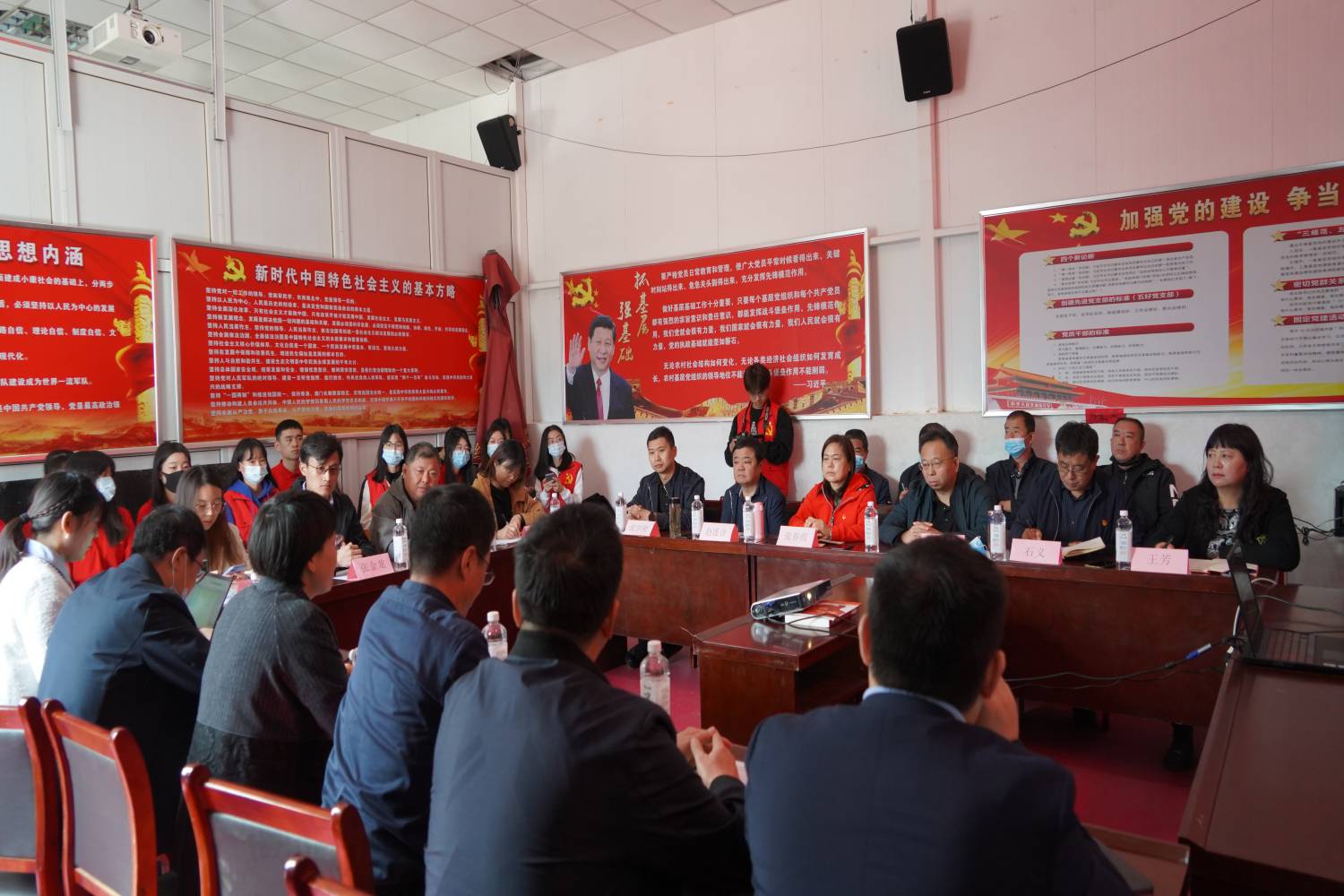 在调研结束后,学生党支部于五间房村村委会召开“党建领航聚合力,乡村振兴谱新篇”主题交流座谈会,就调研发现的问题、提出思路和解决办法进行总结交流。座谈会由吕素香教授主持。