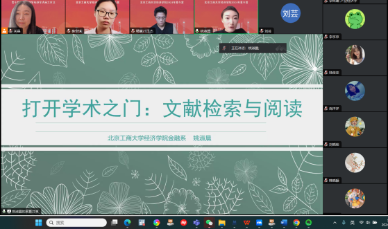 最后,经济学院应用经济学在读研究生刘芸、郭沛杰分享了各自的考研经验;金融专业在读研究生姚淑晨向各位营员分享了如何进行文献的检索与阅读;理论经济学在读研究生王慧妍,分享了多姿多彩的研究生学习生活。
