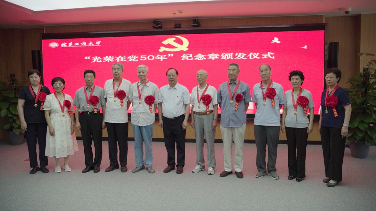 6月28日,学校在阜成路校区隆重举行“光荣在党50年”纪念章颁发仪式。学校党委书记黄先开,党委副书记宋晓欣、党委常委、纪委书记杨红,党委常委、副校长毛新述、寇红江出席,“光荣在党50年”纪念章获得者代表、学校离退休工作领导小组成员、离退休党委支部党员代表参加。颁发仪式由宋晓欣主持。