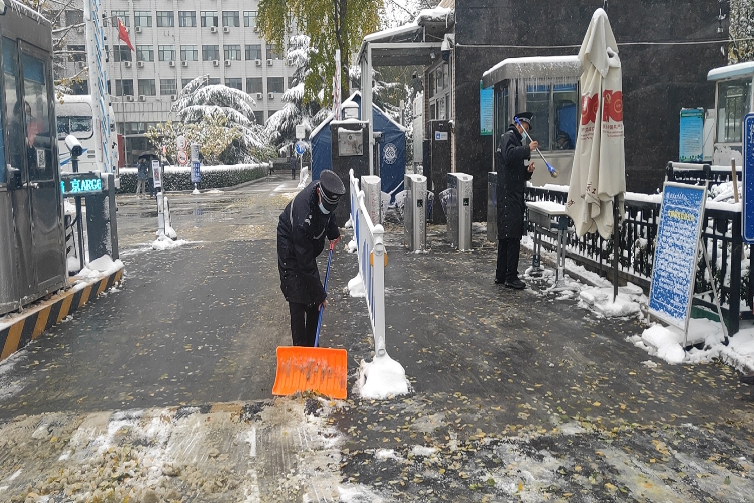 学校后勤保障系统坚持未雨绸缪主动先行,以师生为本,做到精心管理、贴心服务、用心育人,不断提高管理水平,争取“想得周到,做得到位”,抓好工作细节,提升服务质量,争取为学校的教学、科研提供更好的保障。工作人员在寒冷的夜晚中的“浴雪奋战”,守护着校园的温度,守护着一方平安。