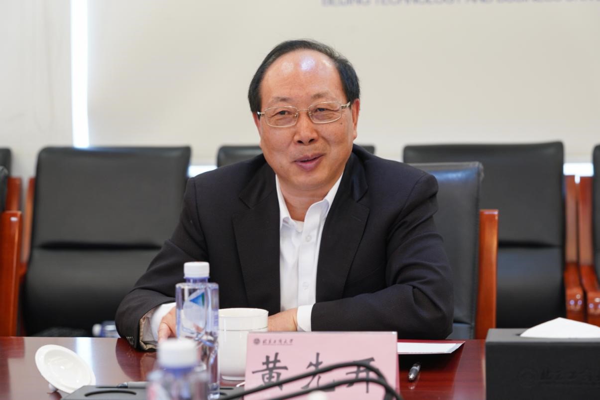 黄先开代表学校对崔启明一行来访表示热烈欢迎,并介绍了学校的基本情况、办学定位和发展方向。他谈到,近年来,学校坚持以高水平研究型大学建设为目标,以首都经济社会发展需求为导向,大力调整学科专业布局,加快推进学校转型发展,充分发挥商科、轻工和食品学科优势,积极服务首都城市战略定位,为首都“两区”“三平台”、数字经济发展、国际消费中心城市建设等提供了有力的人才支撑和智力支持。希望双方进一步交流经验、增进了解、深化合作、共谋发展。