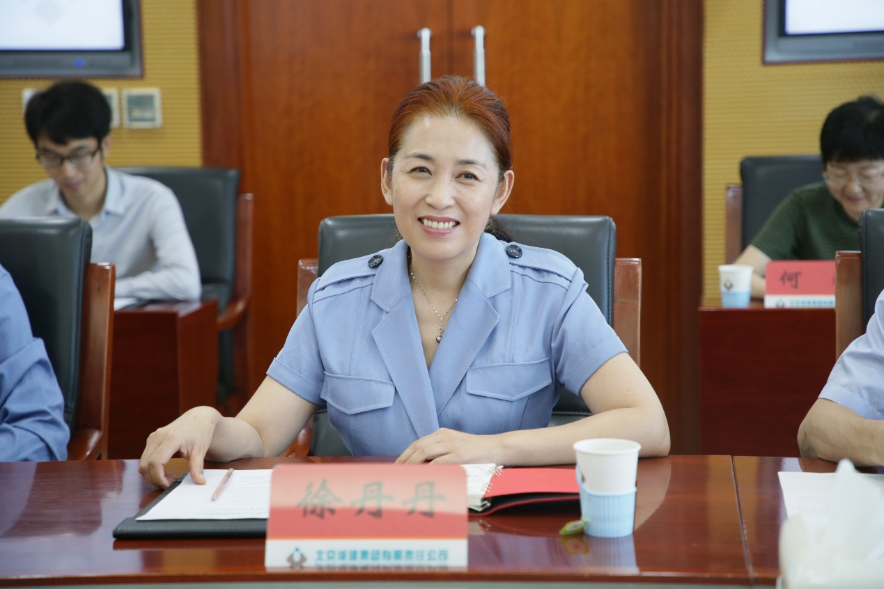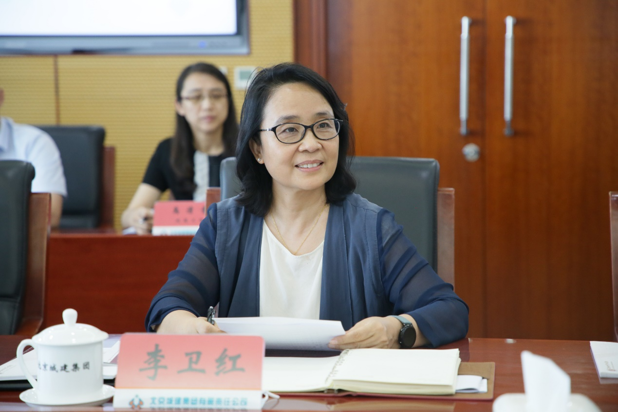 李卫红对徐丹丹一行的到来表示热烈欢迎。她介绍了城建集团由“逢山开路、遇水架桥”的基建工程兵转业发展,从“青涩之师”成长为“品牌国企”的光辉历程;对我校商学院王斌教授多年来担任城建集团外部董事,为集团发展做出的突出贡献致以真诚的感谢,对学校教师的专业能力和情怀表示由衷的敬佩。李卫红介绍到,城建集团每年引进人才数量稳定持续,当前在岗的北京工商大学毕业生百余人,期待与北京工商大学进一步开展战略合作,资源共享,携手共进!