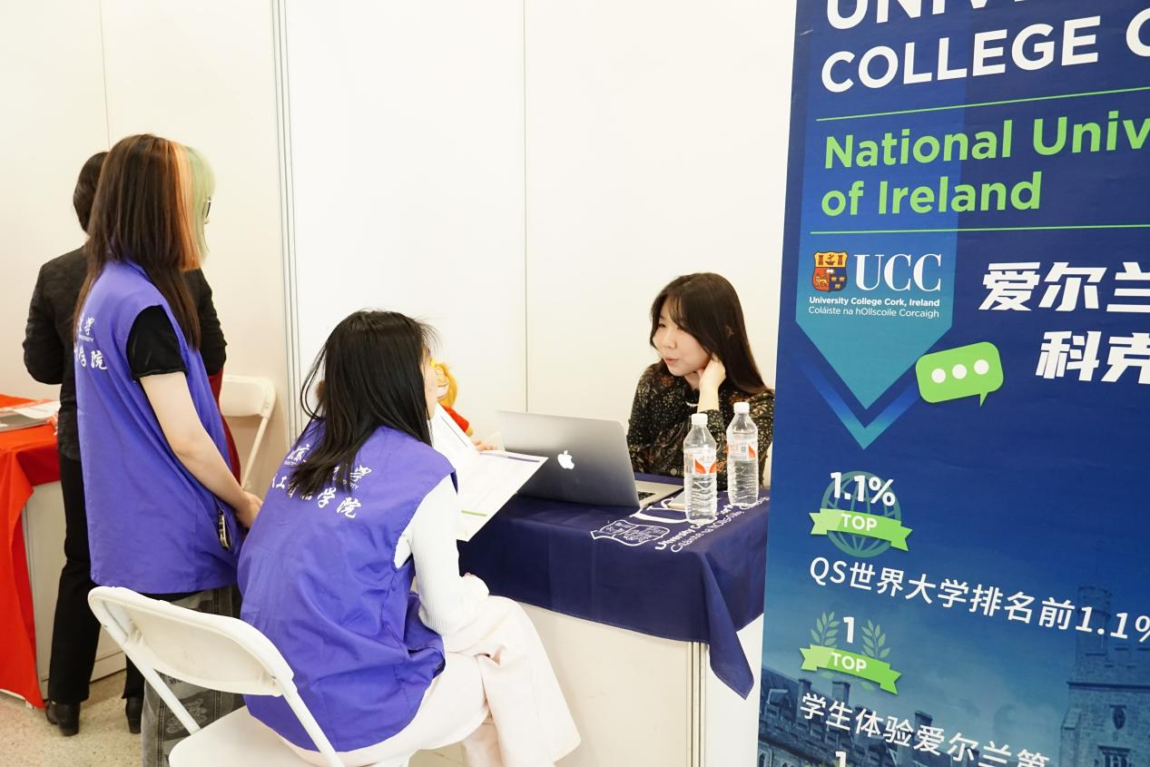 同学们驻足细致浏览各参展高校的展台信息,并与参展海外高校代表交流互动,咨询自己关注的留学院校。北京留学服务行业协会桑铭泽会长也为同学们详细讲解相关留学政策。同学们通过此次活动对海外高校的入学标准、申请程序、条件以及留学前的各项准备工作有了更加清晰的了解,为自己毕业后就业去向选择提供了更多的可能性。