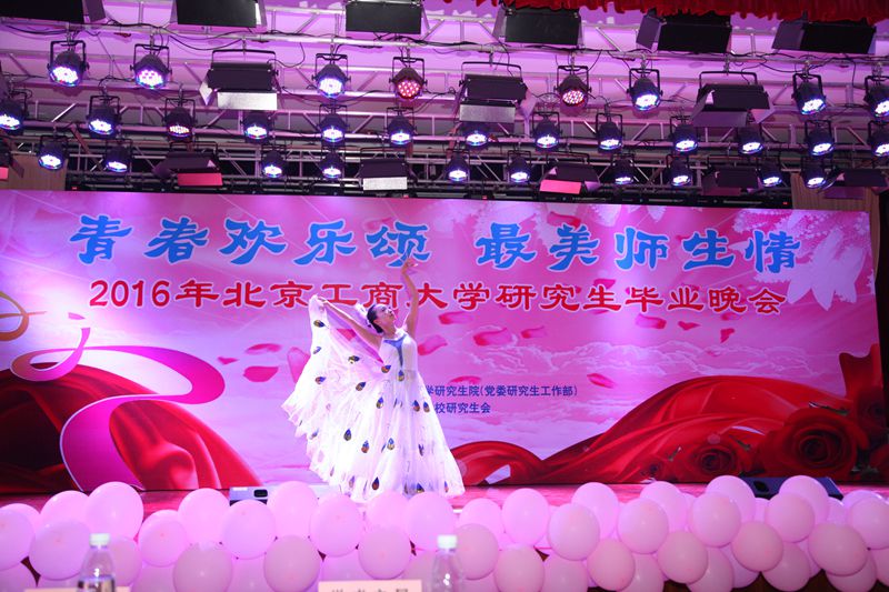 《毕业骊歌,情恋工商》篇章中2016届毕业研究生代表合唱《爱因为在心中》娓娓道出同学们不舍离别,感恩母校的心情;高亢的女生独唱、优雅的小提琴、二胡独奏令人为之沉醉;经济学院2016届毕业研究生特意为晚会准备的相声《我的学生时代》妙语连珠,带着同学们在笑声中一同回顾了学生时代的点点滴滴。《凤凰花开,青春未央》篇章中幽默欢快的小品《恋爱倒叙》一次次引爆全场笑点,而火热的现代舞、优美的古典舞、优雅的民族舞吸引了在场的每一位观众。精彩的节目得到了同学们的阵阵喝彩,点燃了观众们的热情。本场晚会有40%的节目是毕业生参加演出的,另外研究生舞蹈协会也为晚会精心准备了4个舞蹈节目,北京联合大学也为晚会带来了精彩的节目。