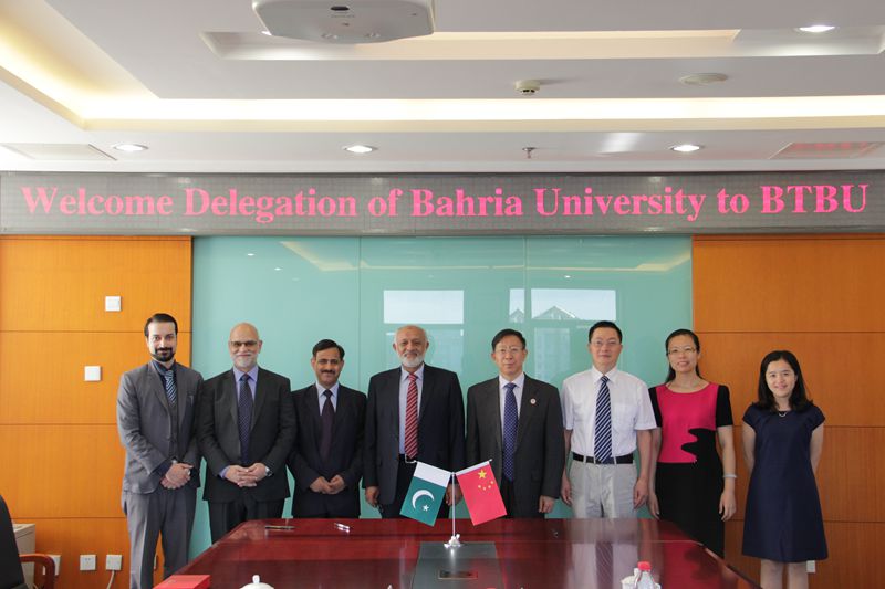 孙宝国校长对坦维尔·菲兹校长一行访问我校表示欢迎,他说巴基斯坦和中国的友谊源远流长,两国间不但建立起了全天候的战略合作伙伴关系,同时也是一带一路战略的重要合作伙伴。在中巴两国全面深化战略合作的大格局下,我校与巴基斯坦巴利亚大学的合作得到了双方上级部门和巴基斯坦驻华大使馆的大力支持,学校积极开展国际合作与交流,特别是将发展外国留学生教育作为国际合作的重中之重,巴基斯坦作为我校主要的外国留学生生源地之一,我校积极深入开展与巴利亚大学的全面合作与交流,将成立北京工商大学巴基斯坦研究中心,与巴基斯坦高校在学生联合培养、教师互访交流和联合科研合作等方面开展相关项目,期待双方能够在共同感兴趣的优势学科和领域开展深入的合作和交流。