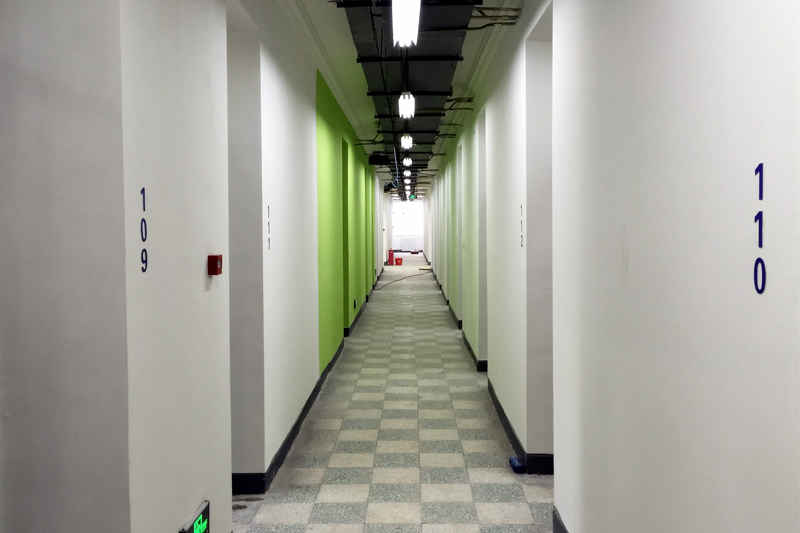 为给2016级研究生提供更加舒适、便捷的学习生活环境,规划建设处利用暑期对阜成路西区12号学生宿舍楼进行了全面、科学的改造,进行了钢筋混凝土板墙与原木屋架加固修复,建筑强弱电、给排水及采暖系统新做,建筑内外进行整体装饰装修,更换了全部室内木门及修复了部分塑钢窗。改造面积2500余平米,共有宿舍用房94间、公用卫生间3个、盥洗室3个,洗衣间1个,改造完成后可容纳280余名学生入住。规划建设处牵头协调保卫处与网络中心,在改造中坚持“前置沟通、主动作为、高度统一、协同合作”,实现了无线网络铺设到房间、公共区域安防技防安装无死角、宿舍消防报警装置保安全。