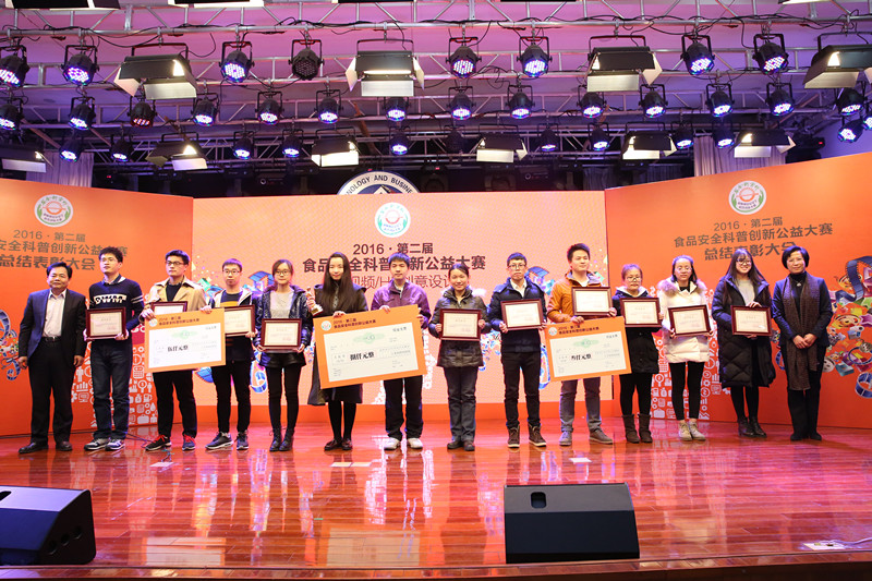 总结大会上,颜江瑛司长和贾英民副校长为获奖者颁奖,并对他们给予了祝贺和肯定。最后参会嘉宾以食安之光点亮全国,共同开启2017食品安全科普的新征程。