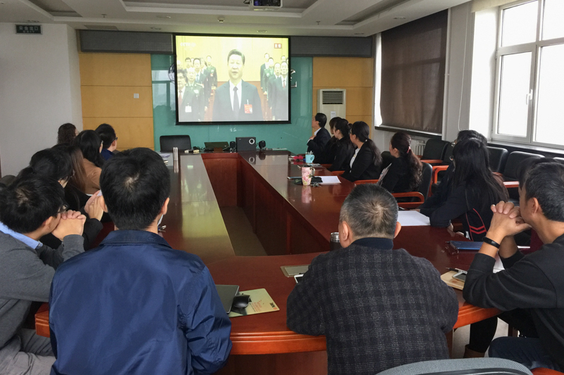 举国盛事,万众瞩目。10月18日上午9点,中国共产党第十九次全国代表大会在北京隆重开幕。我校在两校区专门设立了多个集中收看地点,积极组织广大师生收看收听大会开幕盛况。师生们分别在会议室、教室、食堂、宿舍等地点,通过电视、网络和广播等方式收看收听了大会开幕式。