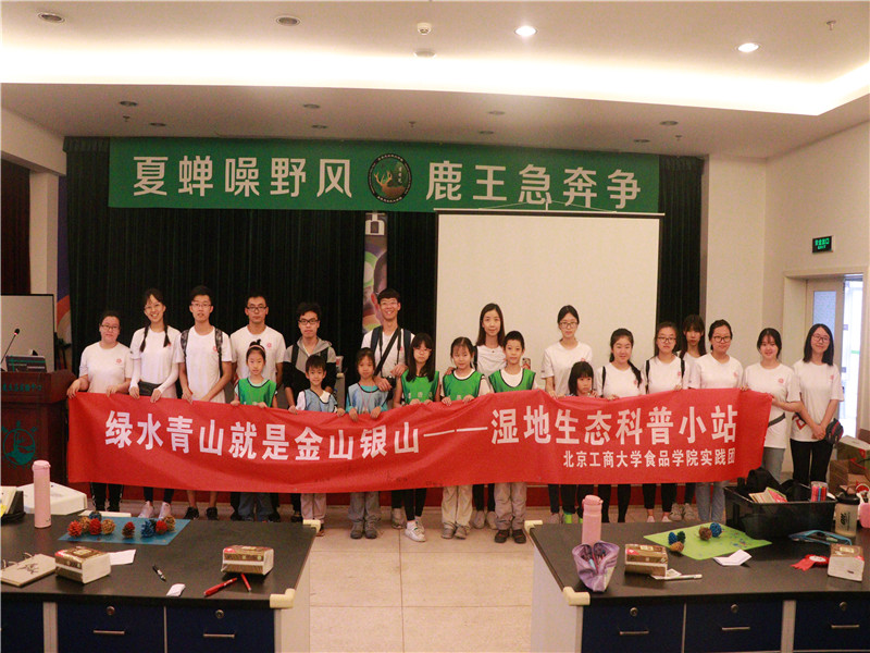 务实科普宣传,贡献自身力量。17日下午,为响应十九大“牢固树立社会主义生态文明观,推动形成人与自然和谐发展现代化建设新格局”的号召,实践团在麋鹿苑为现场参观的小学生们组织了内容生动丰富的“苑院”科普宣传小课堂。课堂上,实践团成员对本次活动做了整体讲解,随后的抢答和互动环节将现场气氛推向了高潮,大家用通俗易懂的语言为孩子们宣讲保护生态环境的知识,倡导每一个人都要爱护生态环境,爱护我们的生活家园。