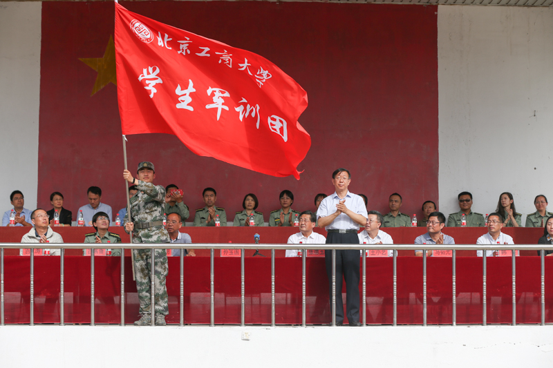 在庄严嘹亮的军歌声中,军训开训仪式正式开始。学校党委副书记、军训团总指挥张德玉宣读《北京工商大学关于开展2018级本科生军训并成立军训团的决定》。2018级学生军训时间为9月17日到29日,本次军训团划分为6个营、14个连,其中一营为商学院,二营为经济学院,三营为计信学院,四营为理学院和食品学院,五营为材机学院和法学院,六营为艺传学院和外国语学院。学校还选拔16名退伍大学生分散到各连担任副指导员。