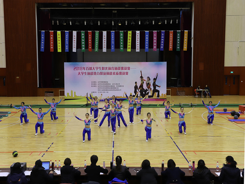 12月8日,2018年首都大学生阳光体育体能挑战赛(体能热力操和体能素质挑战赛)在我校良乡校区文体馆举行,共有来自19所高校的29支队伍参加比赛。此次挑战赛由北京市教育委员会主办,北京市大学生体育协会和我校承办,北京市大学生体育协会健美操、艺术体操分会、北京市大学生体育协会健身舞蹈分会协办。