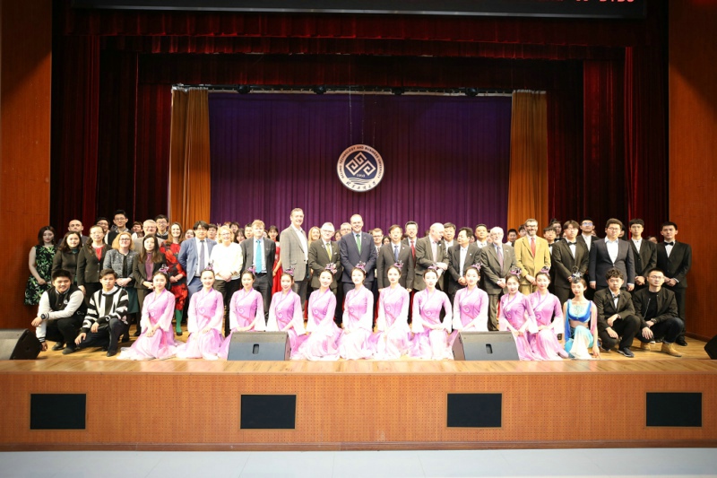 3月17日正值爱尔兰国庆日,来自我校的学生艺术团和来自爱尔兰的乐团在阜成路校区东区礼堂共同进行了“北工商爱尔兰日”交流演出。来自北工商的500多名学生代表和80多名留学生代表一同观看了演出。会谈结束后,在孙宝国校长和贾英民副校长的陪同下,部长代表团一行前往礼堂参加了此次活动。孙宝国校长、麦克休部长和谢百成校长分别在活动上致辞。